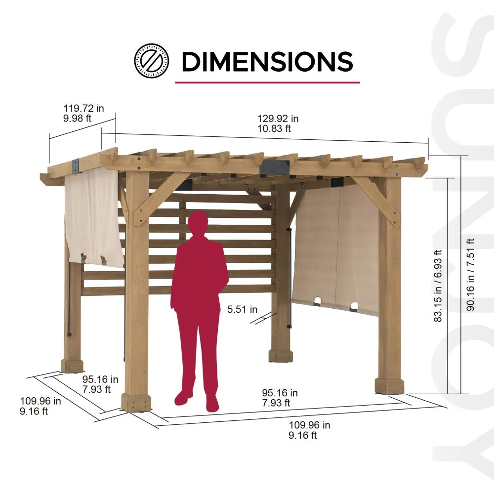 Treat yourself to comfort and convenience with this SUNJOY cedar wood-framed hot tub pergola kit. The premium cedar wood roof slats combined with an adjustable sling canopy provide protection from the glaring sun. An incorporated privacy screen provides a functional design. With straightforward, easy-to-follow assembly instructions you’ll be relaxing in your favorite new outdoor living space for years to come.