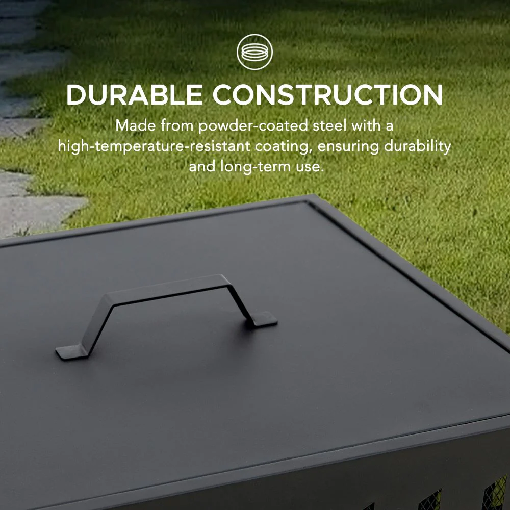 Introducing SUNJOY’s Hartefeld Fire Pit: your ultimate outdoor companion for cozy comfort. This backyard fire pit is easy to assemble and boasts strong four support frames that enhance stability, making it adaptable to uneven ground. Crafted from powder-coated steel with a high-temperature-resistant coating, it ensures durability and long-term use. Ventilation hole promotes better airflow, resulting in bigger flames and a more consistent fire. Included poker and lid allow you to safely manipulate wood, providing a safer experience. The PVC package also ensures your wood burning fire pit will stay protected in outdoor conditions.