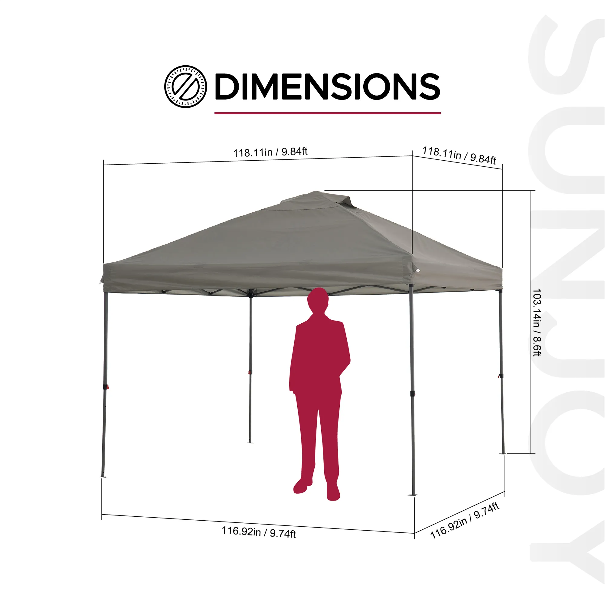 Instantly create an outdoor gathering spot for family and friends away from the glaring sun and pesky insects. This 10 ft. x 10 ft. soft-top, pop-up patio gazebo by the world’s leading ready-to-assemble outdoor structure maker, Sunjoy, creates a perfect affordable and portable outdoor setting. Keep cool in the shade supported by the durable powder-coated steel frame. The weather-resistant fabric top is designed to withstand the outdoor elements. With straight-forward, easy-to-follow assembly instructions you’ll be relaxing in your favorite new outdoor living space in no time.
