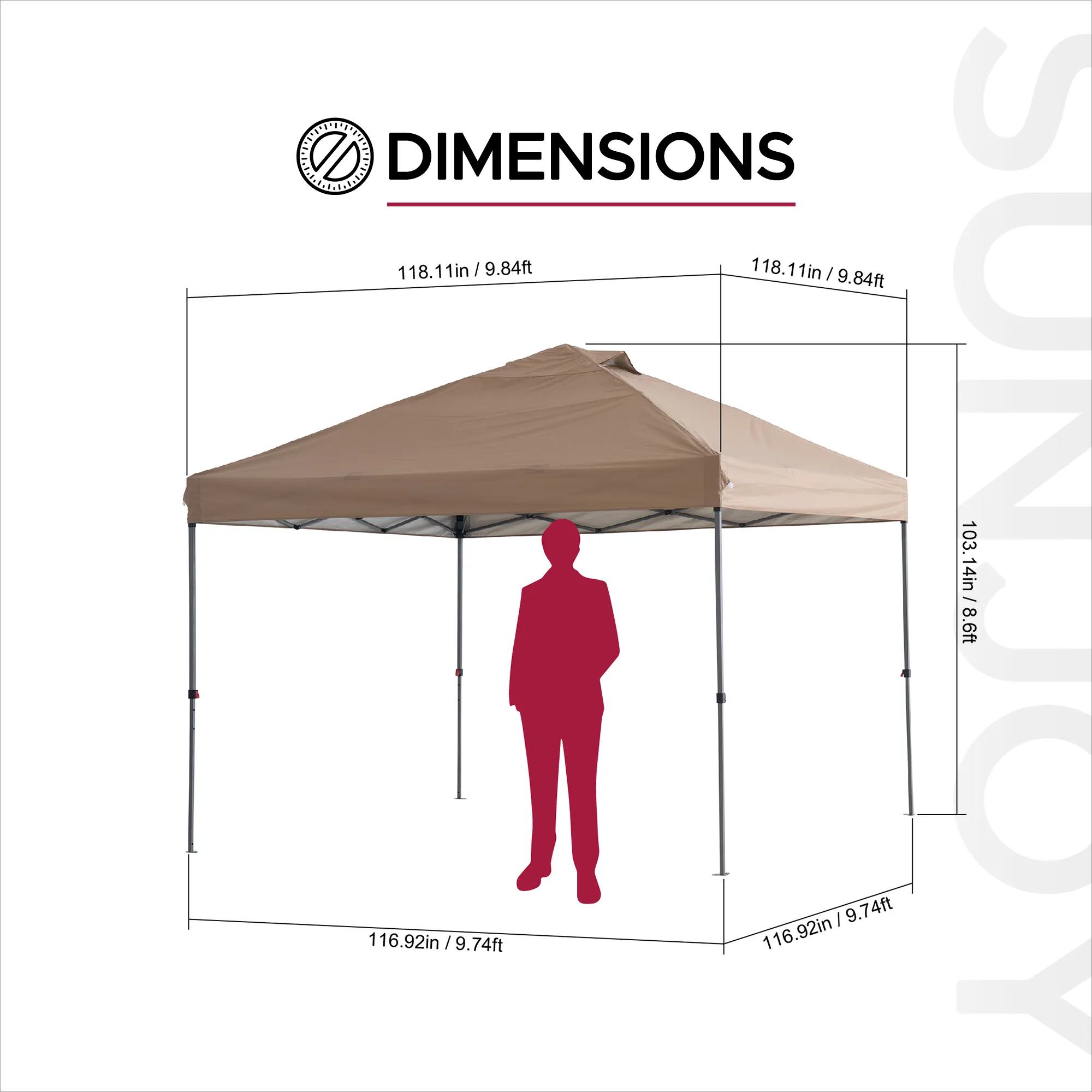 Instantly create an outdoor gathering spot for family and friends away from the glaring sun and pesky insects. This 10 ft. x 10 ft. soft-top, pop-up patio gazebo by the world’s leading ready-to-assemble outdoor structure maker, Sunjoy, creates a perfect affordable and portable outdoor setting. Keep cool in the shade supported by the durable powder-coated steel frame. The weather-resistant fabric top is designed to withstand the outdoor elements. With straight-forward, easy-to-follow assembly instructions you’ll be relaxing in your favorite new outdoor living space in no time.